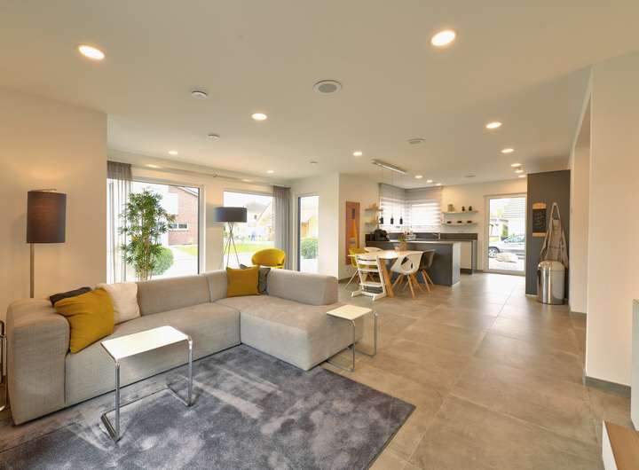 Dein Fertighaus von LivingHaus bietet dir eine hochwertige Grundausstattung, die keine Wünsche offenlässt. Du erhältst moderne Böden, edle Türen und stilvolle Sanitäranlagen, die perfekt aufeinander abgestimmt sind. Die Küche ist individuell geplant und wird ohne unverbindliche Gutscheine geliefert, sodass du gleich starten kannst. Der hohe Vorfertigungsgrad mit geschlossenen Wänden sorgt für einen effizienten Bauprozess, und die komplette Bauantragsplanung wird durch erfahrene Architekten übernommen. Du profitierst von einem umfangreichen Leistungspaket, das auch Bauversicherungen und eine 18-monatige Festpreisgarantie umfasst. Darüber hinaus sind die Innenausbaumaterialien für das gesamte Erdgeschoss bereits enthalten, inklusive Fliesen und bodengleichen Duschen mit Echtglasabtrennung. Die moderne Wärmepumpentechnik sorgt für ein angenehmes Raumklima, während aluminiumgeschäumte Rollläden für optimalen Hitzeschutz sorgen. Dein zukünftiges Zuhause wird also genau so, wie du es willst.