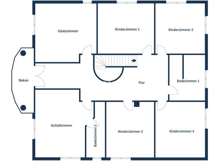 Das Obergeschoss erreichen Sie über eine breite Treppe. Der zentrale Flur führt zu sechs flexibel nutzbaren Zimmern, ideal als Kinder-, Gäste- oder Arbeitszimmer. Zwei Tageslichtbäder steigern den Wohnkomfort: ein Bad en suite am Elternschlafzimmer sowie ein weiteres Bad mit Eckbadewanne und Whirlpoolfunktion. Vom Flur aus gelangen Sie außerdem auf den Balkon mit Blick über die ruhige Nachbarschaft.