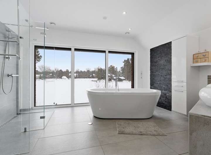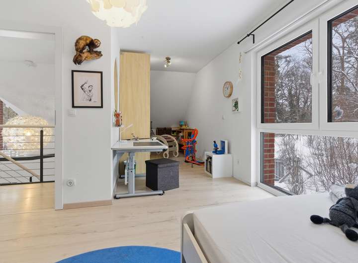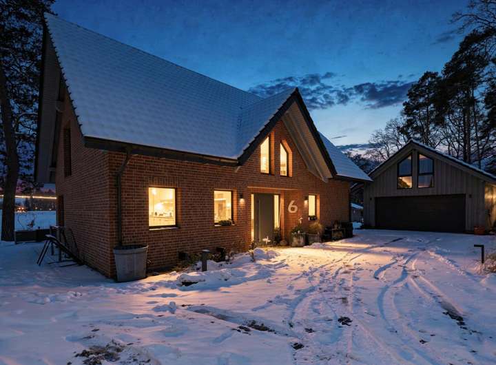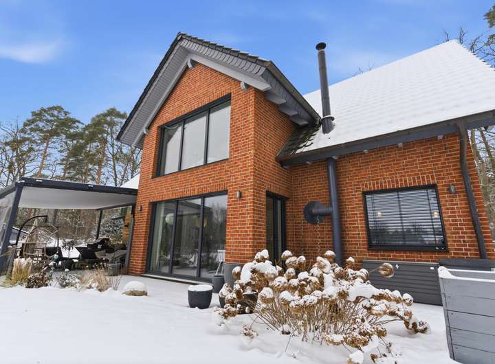Das Haupthaus präsentiert sich architektonisch klar und zeitlos mit einer ansprechenden Klinkerfassade und modernen Akzenten. Große Fensterflächen sorgen für helle, lichtdurchflutete Räume und schaffen eine angenehme Verbindung zwischen Innen- und Außenbereich. Im Inneren überzeugt das Haus durch eine moderne und hochwertige Ausstattung: klare Linien, edle Materialien und ein durchdachtes Raumkonzept schaffen ein exklusives Wohnambiente mit hohem Komfort.