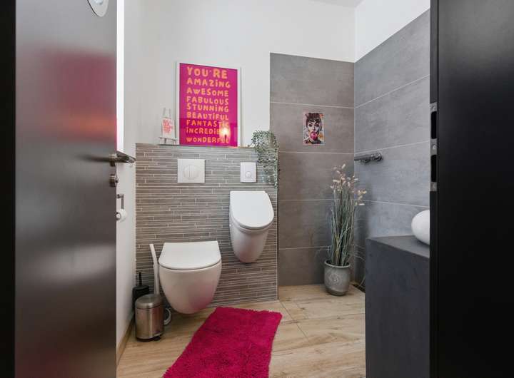 Der Wohn- und Essbereich ist offen gestaltet und bietet ein großzügiges Raumgefühl. Die Raumaufteilung eignet sich ideal sowohl für Paare als auch für Familien mit Anspruch an Design und Qualität.