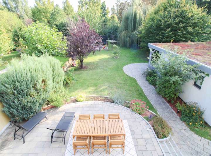 + Erholung pur: Der teils sichtgeschützte Garten auf ca. 929 m² Grund lädt zum Verweilen ein - 2 Terrassen bereichern das Erlebnis