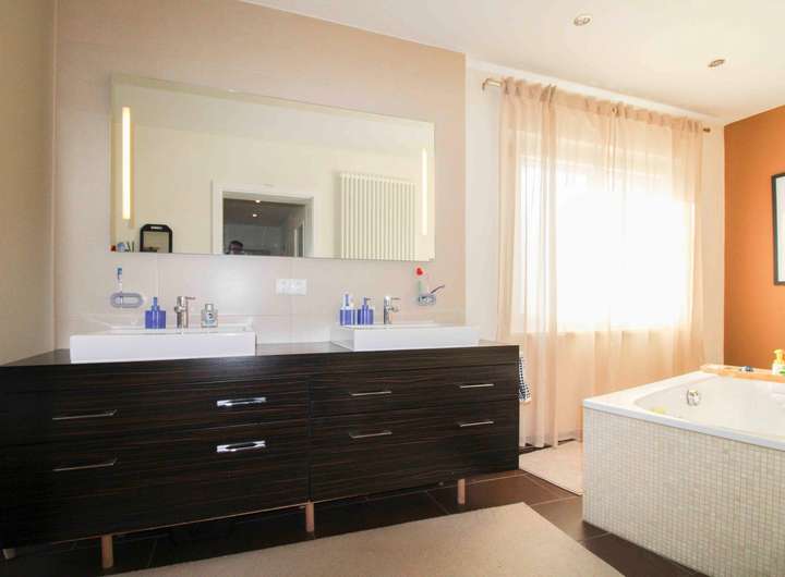 Obergeschoss: Drei Schlafzimmer, Ankleidezimmer, großes Familienbad mit Dusche, freistehender Wanne und Doppelwaschtisch