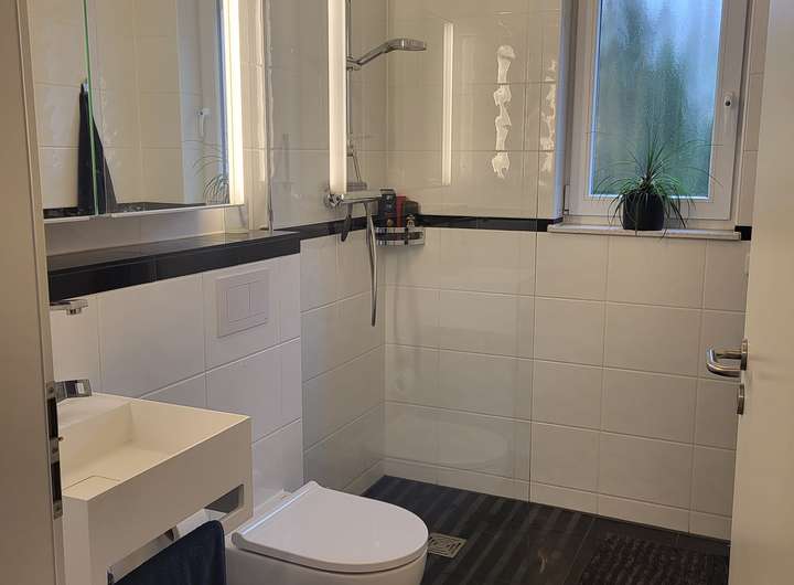 Die beiden Badezimmer sind hochwertig ausgestattet und zeitgemäß gestaltet. Es sind zwei Duschen, sowie eine Badewanne vorhanden. Für zusätzlichen Wohnkomfort sorgt die Fußbodenheizung im Erdgeschoss sowie im Badezimmer im 1. Obergeschoss. Die übrigen Räume werden über Heizkörper beheizt.