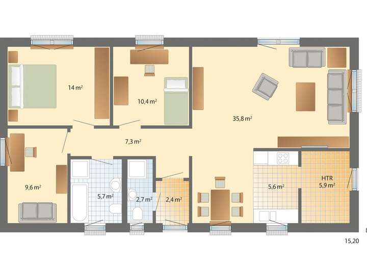 Der Grundriss des Hauses wird so gestaltet, dass er den Anforderungen Ihrer Familie gerecht wird. Große offene Wohnbereiche bieten ausreichend Platz für gemeinsame Aktivitäten und lassen viel natürliches Licht herein. Ein separates Spielzimmer oder ein Kinderzimmer sorgt dafür, dass Ihre Kinder sich entfalten können.