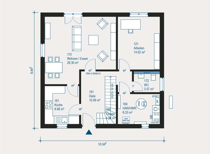 Die Baunebenkosten, wie zum Beispiel Grunderwerbskosten, Notar, Hausanschlüsse, behördliche Gebühren oder Finanzierungskosten sind nicht im Gesamtpreis enthalten. Die Abbildungen zeigen zum Teil Sonderausstattungen. Für die Richtigkeit und Vollständigkeit der Angaben kann keine Gewähr bzw. Haftung übernommen werden. Ein Zwischenverkauf und Irrtümer sind vorbehalten.