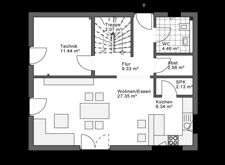 - Haustechnik mit Elektroinstallation und Heizung sowie Sanitärinstallation inklusiv