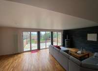 Inside the house you will be delighted by the openness and brightness of the rooms. The hallway connects 2 bedrooms and a bathroom on the left side on the first floor. To the right are the spacious kitchen. The large living room, with space for dining area and large couch, offers with its 3 large floor-to-ceiling door elements to the terrace a fantastic view of the fields and the Taunus.