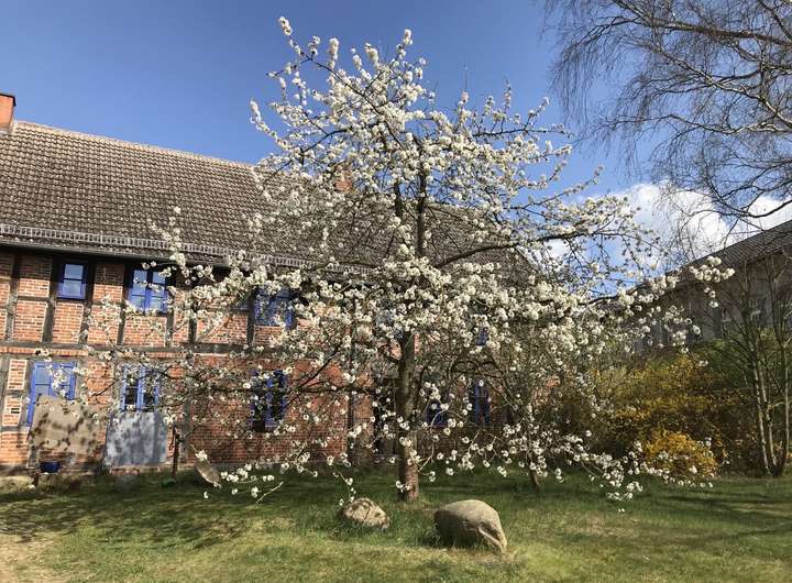 Im großen Innenhof finden sich eine Gartenfläche, Birke, Kirschbaum und weitere (Obst)-bäume und -sträucher, ein massiver großer Stein-Gartentisch, ein gemauerter Backofen (überholungsbedürftig), ein Brunnen mit Schwengelpumpe u.v.m.