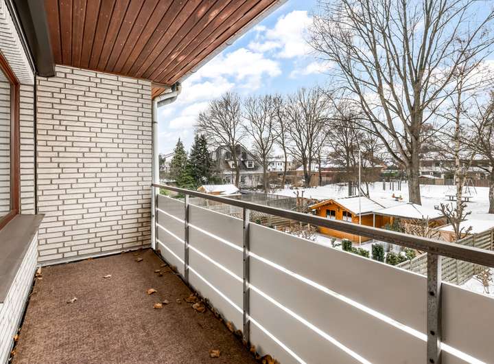 Die Loggia? Eine kleine Bühne zum Westen hin, direkt am Schlafzimmer. Für Abendsonne, Gedanken – und einen Blick, der über den eigenen Garten hinausreicht: Ein kleiner Park schließt sich direkt an und schafft überraschend viel Weite.