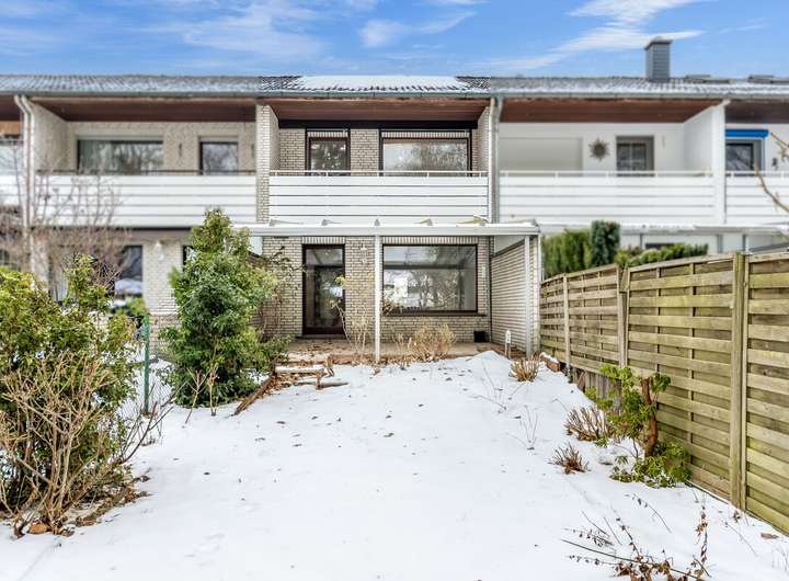Es beginnt leise. Mit einem Garten, der sich nicht aufdrängt, sondern einfach da ist. Umrahmt von Hecken, ein schmaler Pfad zur überdachten Terrasse, dahinter das Haus: zurückhaltend, klar gegliedert, ehrlich in seiner Architektur. Ein Reihenmittelhaus aus dem Jahr 1979, solide gebaut, in einer ruhigen Straße von Delmenhorst. Kein Prunk. Kein Getue. Sondern Raum für Leben.