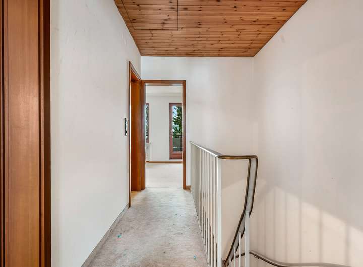 Oben dann drei Zimmer – keines zu groß, keines zu klein. Räume mit Haltung. Und mit Luft zum Atmen. Das Bad: funktional, innenliegend, bereit für ein Update.