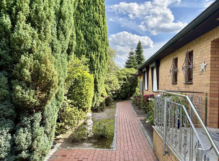 Dieses hier zum Verkauf stehende großzügige und von seinen bisherigen Eigentümern liebevoll gepflegte Einfamilienhaus wurde im Jahr 1966 in solider Bauweise errichtet und im Jahr 2000 um einen großen Abstellraum (Werkstatt) im hinteren Teil des Gartens erweitert.