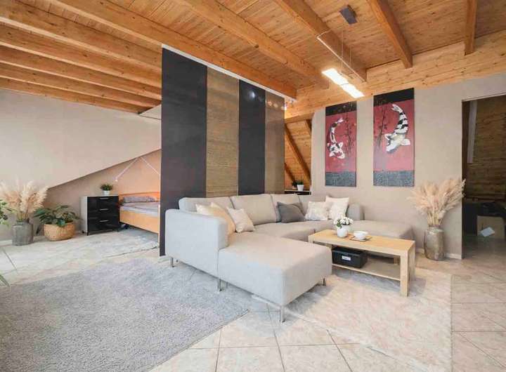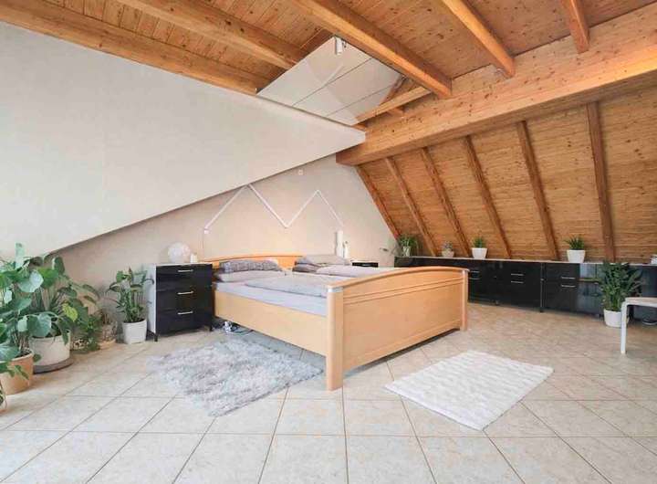 Ein besonderes Highlight stellt das ausgebaute Dachgeschoss dar. Die sichtbare Holzverschalung verleiht den Räumen eine außergewöhnlich warme und gemütliche Wohnstimmung. Dieser Bereich eignet sich hervorragend als Kinderetage, Jugendzimmer, Arbeitsbereich oder Spiel- und Hobbyfläche. Die großzügigen Fensterflächen bringen viel Tageslicht ins Haus und schaffen eine offene, angenehme Wohnqualität.