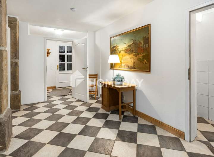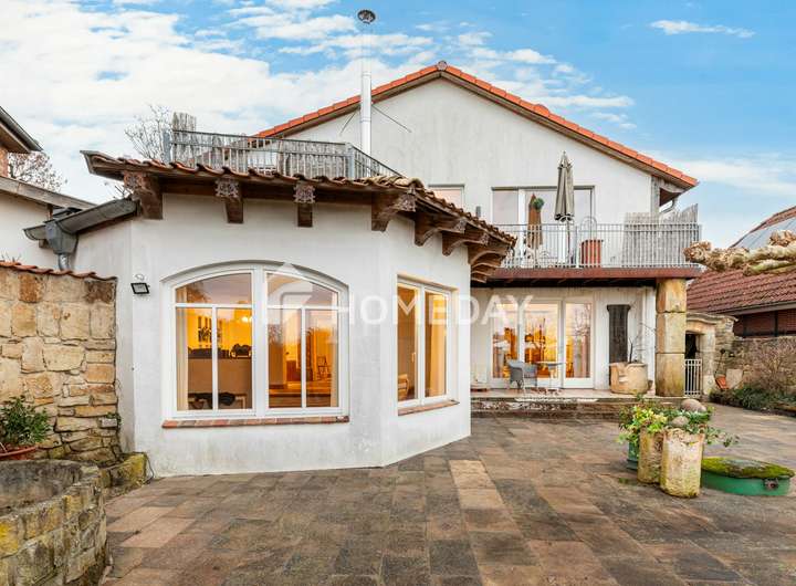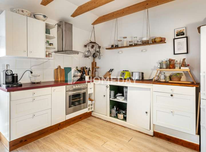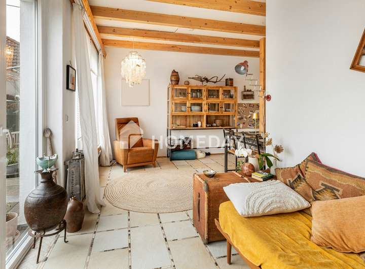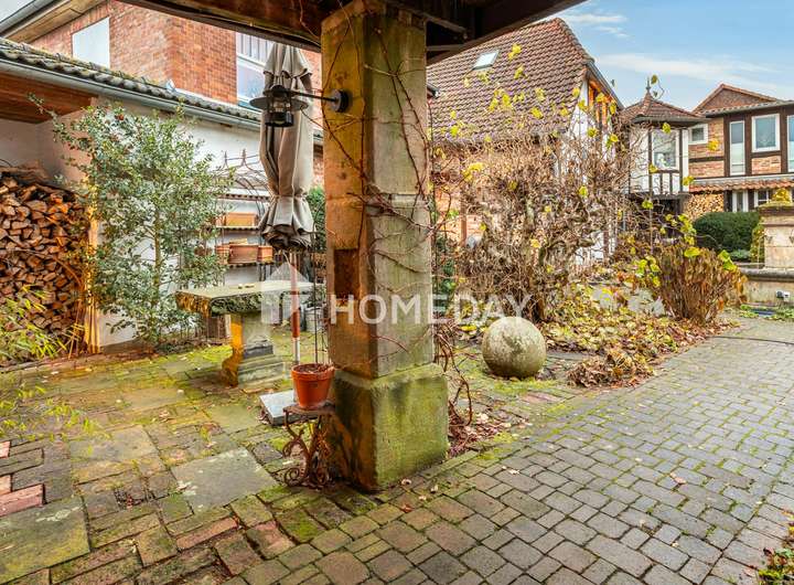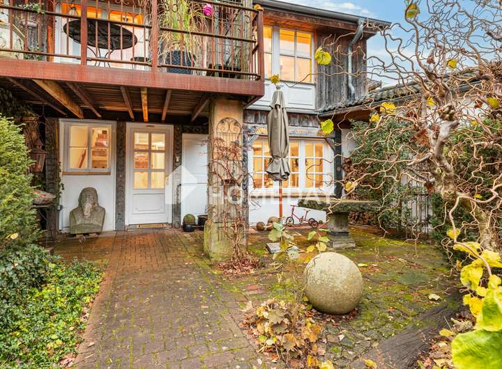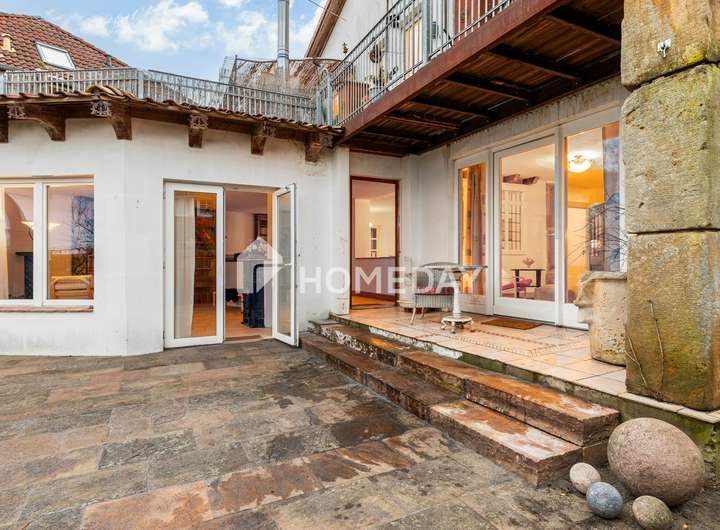 Schon beim Betreten des liebevoll angelegten Innenhofs zeigt sich, dass diese Immobilie mehr ist als ein Zuhause: Sie ist ein Rückzugsort mit Charakter, Behaglichkeit und einem Hauch exklusiver Wohnkultur. Historische Strukturen, gepflegte Natursteinmauern und üppige Bepflanzung verleihen dem Anwesen eine einzigartige Atmosphäre. In dieser angenehm ruhigen Wohnlage präsentiert sich ein außergewöhnliches Einfamilienhaus mit Einliegerwohnung im Obergeschoss – auf einem rund 542 m² großen Grundstück.