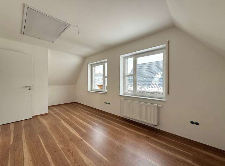Energieeffizienz wird hier großgeschrieben: Dreifach verglaste Fenster, Außenrollläden sowie Solarthermie tragen zu einem nachhaltigen und zukunftsorientierten Wohnen bei.