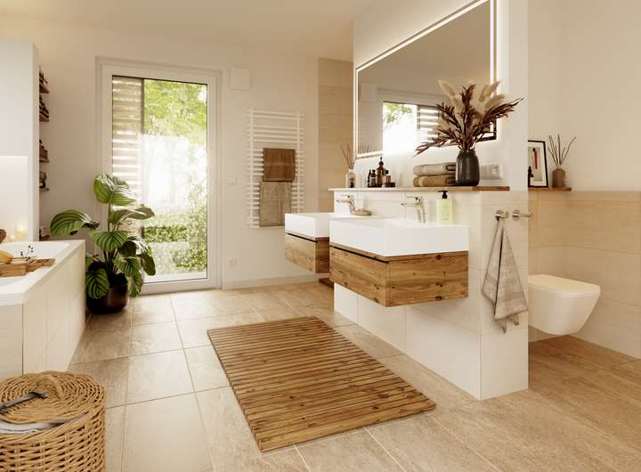 • Fußbodenheizung: Warme Füße? Auch die Fußbodenheizung ist inklusive. Sie steigert nicht nur den Wert Ihres Hauses, sondern sorgt ganz nebenbei noch für echtes Wohngefühl.