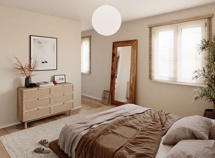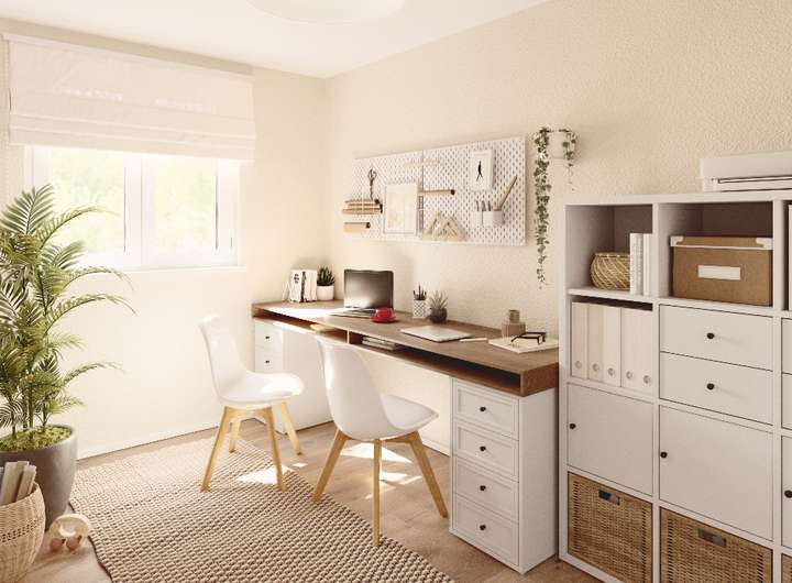 Das Doppelhaus hat insgesamt fünf Zimmer für die ganze Familie zu bieten. Im Erdgeschoss finden Sie den großzügigen Wohnbereich mit Home-Office, Gäste-WC und Hauswirtschaftsraum vor. Während das Obergeschoss Platz für zwei Kinderzimmer sowie ein Badezimmer und Schlafzimmer mit Ankleide bietet.