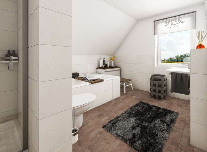 • Fußbodenheizung: Warme Füße? Auch die Fußbodenheizung ist inklusive. Sie steigert nicht nur den Wert Ihres Hauses, sondern sorgt ganz nebenbei noch für echtes Wohngefühl.