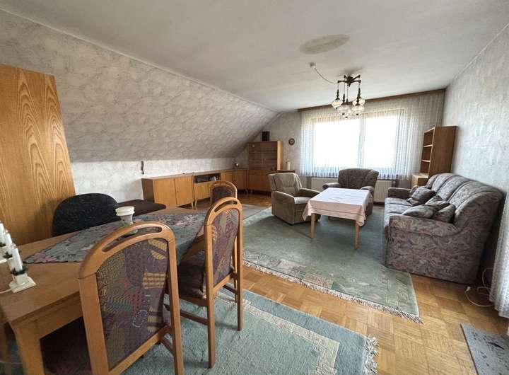 - Erd- und ausgebautes Dachgeschoss mit einem Kellerraum, Spitzboden