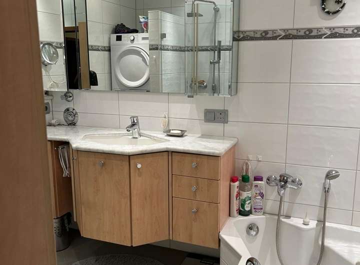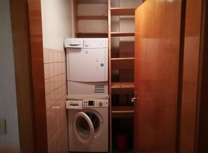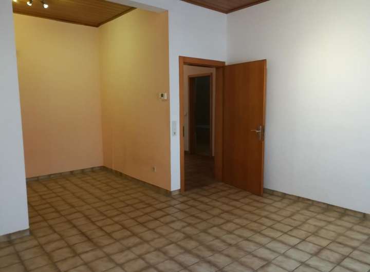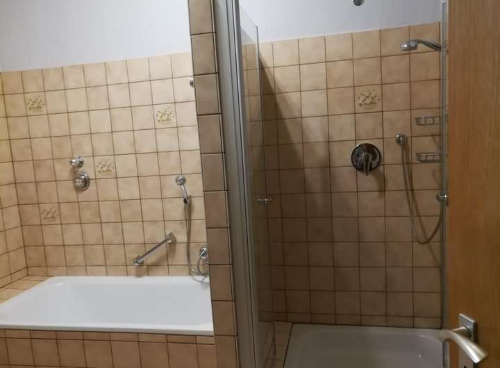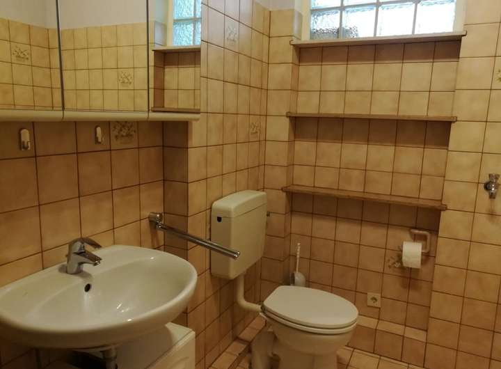 Das Erdgeschoss besteht aus einer Zwei-Zimmerwohnung, die an eine Person vermietet ist. Hier wurden im Bad alle Objekte im Jahr 2020 erneuert. Die Küche wurde 2010 eingebaut.