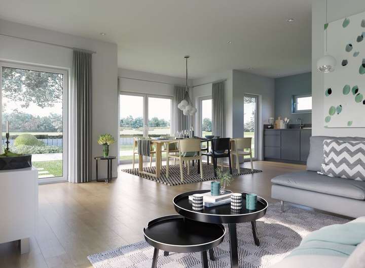 Das angebotene Haus ist projektiert inkl. Grundstück. Das Grundstück wird in Kommission mit angeboten bzw. direkt von Dritten verkauft. Daher kann der o.g. Preis aufgrund aktueller Marktsituationen schwanken.
