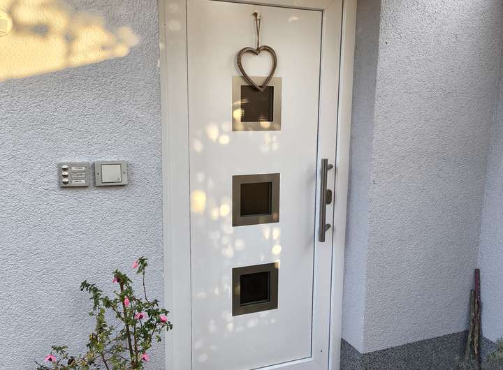 EG und 1.OG Balkon und Terrassentüren neue graue Rollläden,