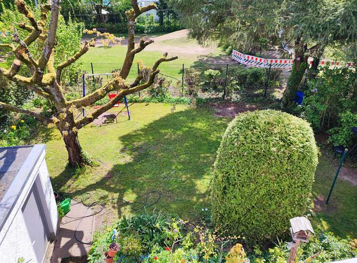 Der wunderschöne Garten wird von den Mietern gemeinsam genutzt und stellt einen weiteren Pluspunkt dieser Immobilie dar. Das Haus selbst ist etwas nach hinten versetzt, sodass ein hübscher Vorgarten entsteht, der dem Gesamtbild des Anwesens zusätzliche Attraktivität verleiht.
