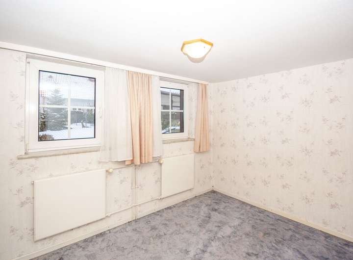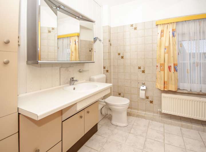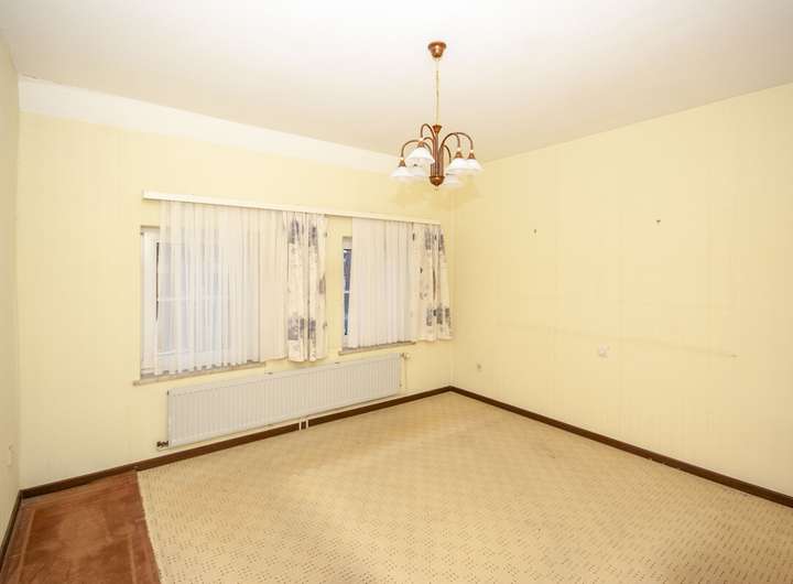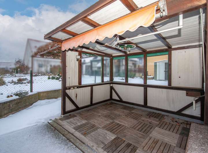 Das Haus bietet eine solide Basis für individuelle Modernisierungen und persönliche Gestaltungsideen. Eine kleine Garage, eine überdachte Terrasse sowie ein pflegeleichter Garten runden das Angebot ab, ideal für alle, die Außenflächen genießen möchten, ohne großen Pflegeaufwand.