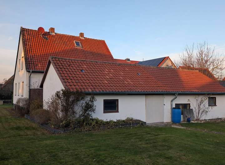 Eine Garage im Nebengebäude, die Platz für kleine PKW, das Motorrad und/oder Handwerk bietet.