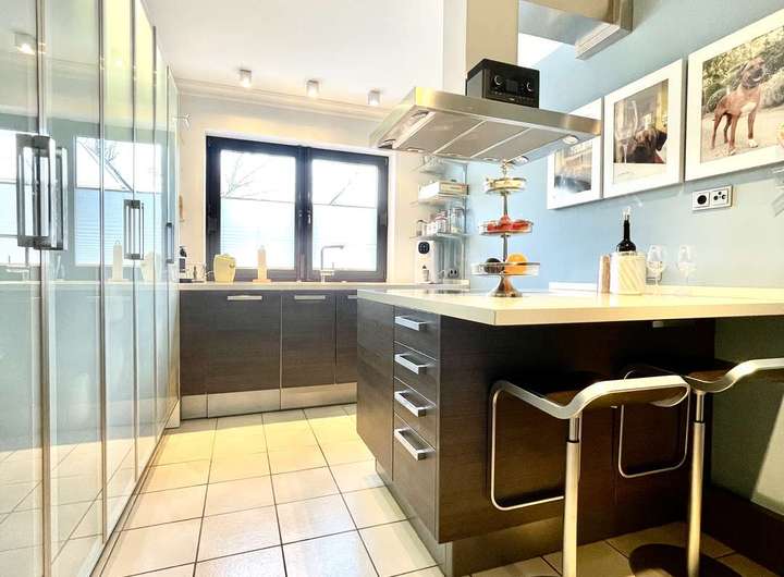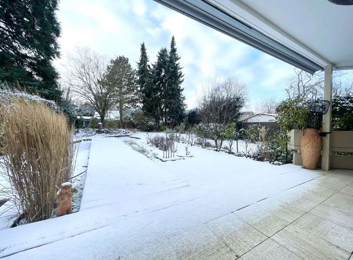 Die großzügige Erdgeschosswohnung bietet ein Wohngefühl, das dem eines Einfamilienhauses gleichkommt. Lichtdurchflutete Räume, hochwertige Materialien, Wintergarten und der direkte Zugang in den liebevoll angelegten Garten schaffen einen Ort, an dem Alltag und Erholung selbstverständlich miteinander verschmelzen. Hier lebt man offen, ruhig und mit dem guten Gefühl von Raum – innen wie außen.