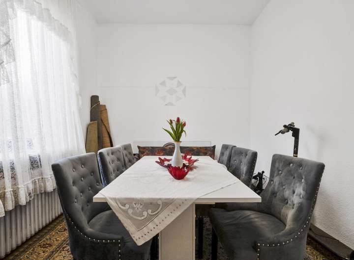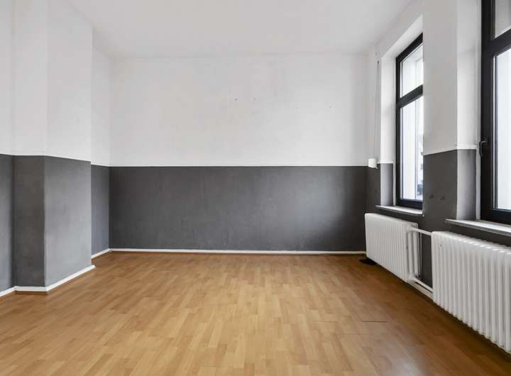 Die Wohnung im Erdgeschoss verfügt über ca. 125m² Wohnfläche, verteilt auf fünf Zimmer. Sie steht aktuell leer, ist sanierungsbedürftig und eignet sich neben der wohnwirtschaftlichen Nutzung auch für eine mögliche Umnutzung als Kanzlei- oder Praxisfläche. Die Wohnung im Obergeschoss bietet ca. 100m² Wohnfläche mit vier Zimmern, ist für 700€ Kaltmiete/Monat vermietet und verfügt über eine attraktive Dachterrasse.
