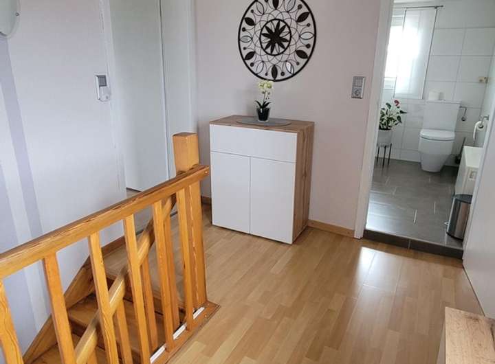 Im OG wurde einheitlich Laminat verlegt. Das Bad wurde 2019 neugestaltet.