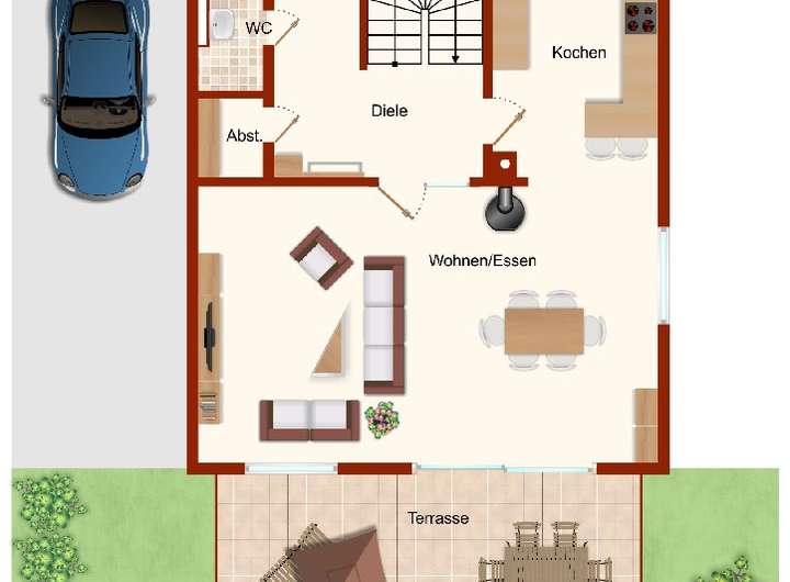 Im Erdgeschoss empfängt Sie ein lichtdurchfluteter Wohn- und Essbereich mit offener Küche, der direkten Zugang zur großzügigen Terrasse bietet. Der großzügige Eingangsbereich mit Garderobe und zusätzlichem Abstellraum, bietet ausreichend Platz wenn ide ganze Familie gleichzeitig nach Hause kommt.