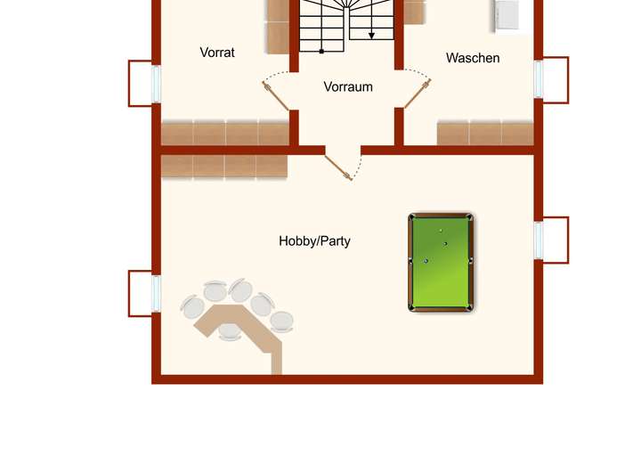 Vollunterkellert, inkl. großem Hobbyraum mit vielfältigen Nutzungsmöglichkeiten