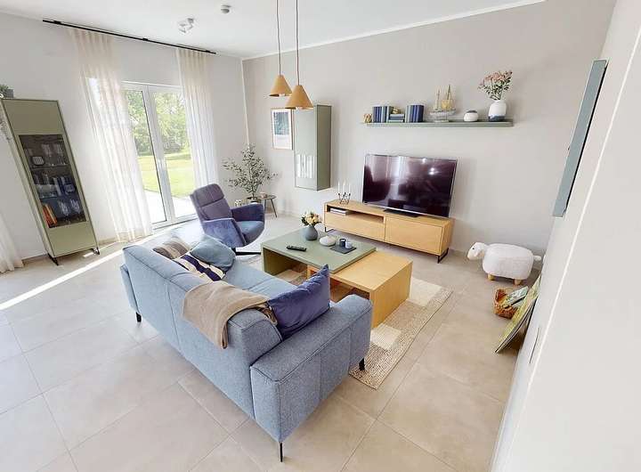 Die moderne Wärmepumpe sorgt nicht nur für eine umweltfreundliche Heizweise, sondern trägt auch zur Reduzierung Ihrer Energiekosten bei. Das gesamte Haus entspricht dem KFW55 Standard, was bedeutet, dass Sie von einer hohen Energieeffizienz profitieren können.