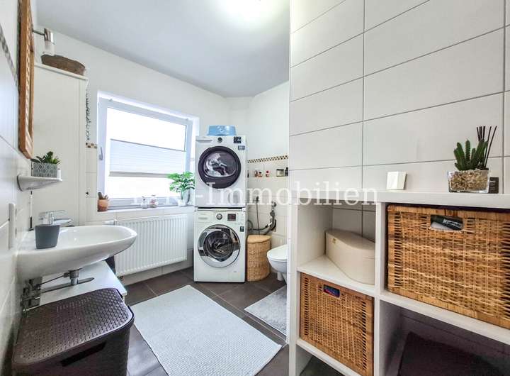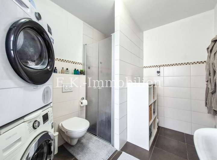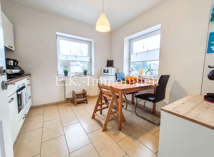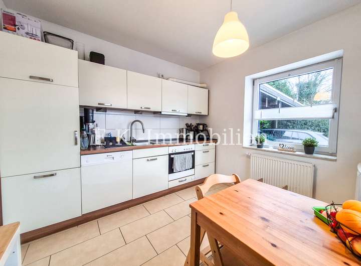 Der Wohn- und Lebensbereich wirkt freundlich und einladend. Fliesen- und Vinylböden sorgen dabei für eine pflegeleichte und zeitgemäße Optik. Ein besonderes Plus ist die separat vorhandene Küche als eigener Raum. Diese ist bereits mit einer Einbauküche ausgestattet und bietet alles, was man im Alltag benötigt: Cerankochfeld, Backofen, Geschirrspüler sowie Kühlschrank.