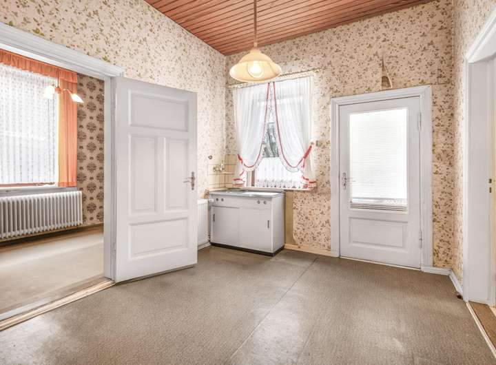 Im Erdgeschoss haben die Eltern der Eigentümer auf knapp 76 m² mit zwei Schlafzimmern, einem großen Wohn- und Esszimmer, einer Küche und einem Wannenbad mit Fenster gelebt.