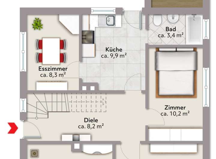 - Geschlossene Holztreppe vorhanden