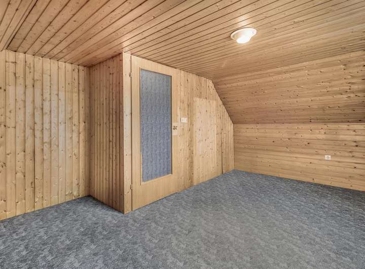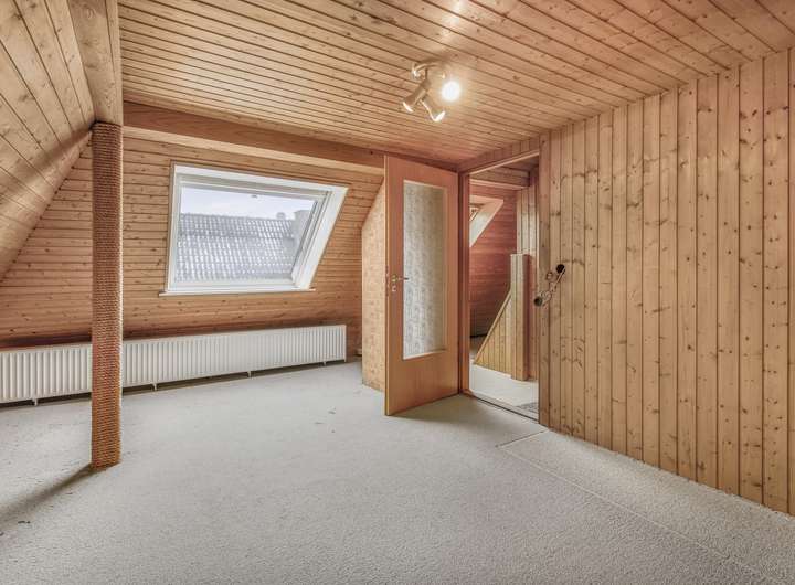 Die Eigentümer haben den Dachboden bereits ausgebaut. Durch die niedrigere Deckenhöhe (knapp 2 Meter) zählt der Boden nicht zu der offiziellen Wohnfläche.
