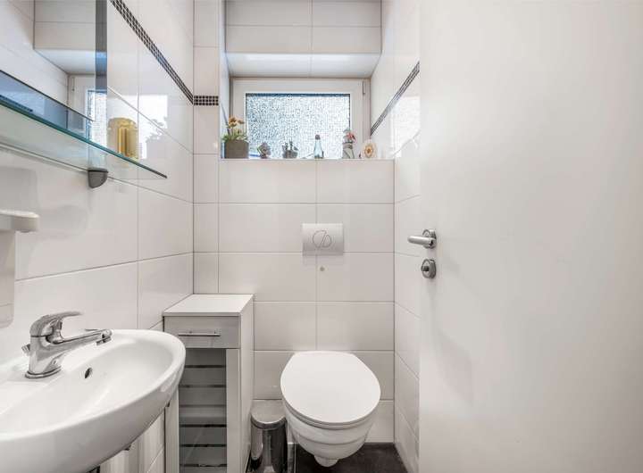 Das Haus verfügt über zwei separate Eingänge, wodurch beide Wohneinheiten unabhängig voneinander genutzt werden können. Auch wenn der Energieausweis das Gebäude als „Einfamilienhaus“ bezeichnet, handelt es sich rechtlich um ein Zweifamilienhaus mit zwei Sondereigentumseinheiten. In der Praxis wohnen hier zwei Familien – die Aufteilung ist klar strukturiert und bietet ein hohes Maß an Privatsphäre. Zum Verkauf steht nur ausschließlich die linke Wohneinheit.