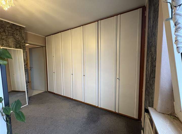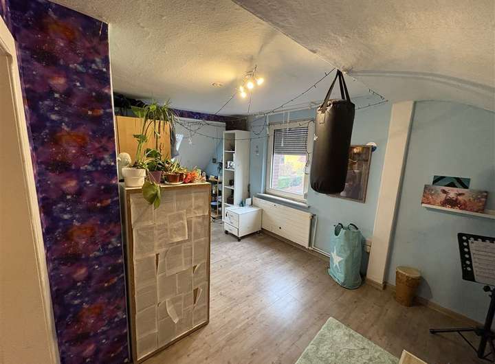 Das derzeitige Elternschlafzimmer überzeugt durch einen großen und durchdachten Einbauschrank mit dahinter befindlichem Stauraum für Koffer, Taschen und vieles mehr. Durch das mittlere Schlafzimmer, welches derzeit als Abstellzimmer genutzt wird, gelangen Sie auf den noch ungedämmten Dachboden, welcher weitere Staufläche bietet.