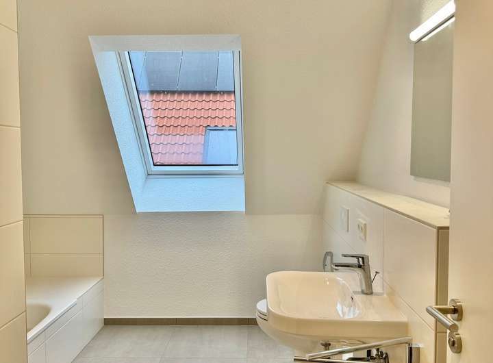 Das Badezimmer ist mit Dusche, separater Badewanne und Fenster ausgestattet und überzeugt durch Helligkeit und Komfort.