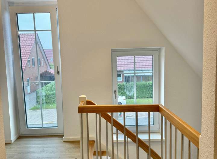 In ruhiger und naturnaher Lage von Elsfleth/Eckfleth erwartet Sie diese großzügige und hochwertig ausgestattete Haushälfte, die sich über zwei Etagen erstreckt und mit einem durchdachten Grundriss überzeugt.