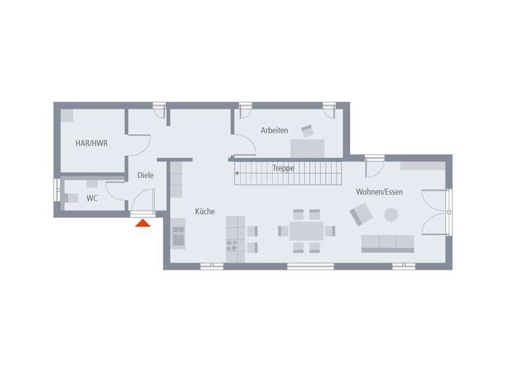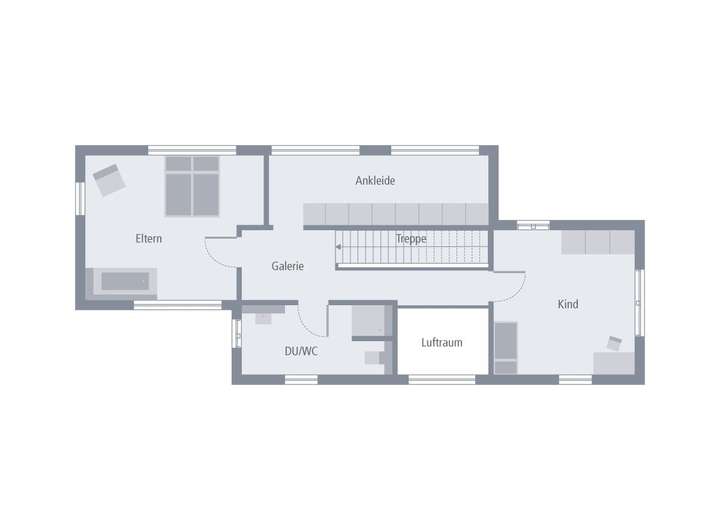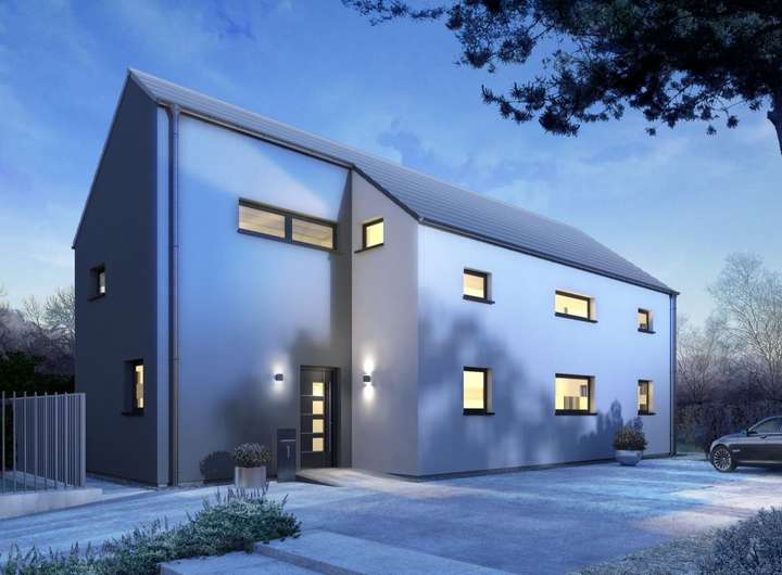 Unter dem Satteldach steckt ein ganz besonderes Konzept - und schon auf den ersten Blick ist hier die Individualität unverkennbar. Der rechteckige und versetzte Grundriss verleiht Design 1 eine Optik der ganz besonderen Art und bietet Raum für Singles, Paare und Familien mit einem Kind. Die außergewöhnliche Planung sorgt für eine klare Gliederung in beiden Etagen. Während im Untergeschoss der große Koch-, Wohn- und Essbereich auftrumpft, begeistern im Obergeschoss die clevere Raumaufteilung und der firsthohe Dachausbau mit hohem Kniestock. Highlights: Das große Elternzimmer mit integrierter Badewanne und die Galerie mit Luftraum, der freien Blick in die untere Etage gewährt.