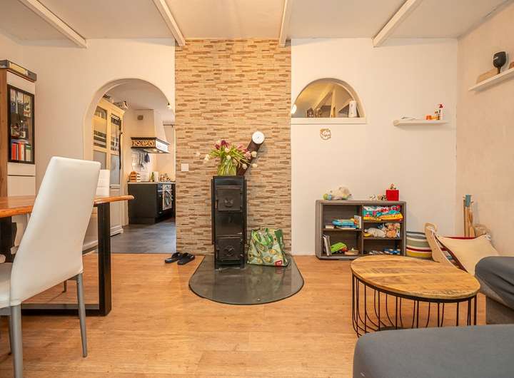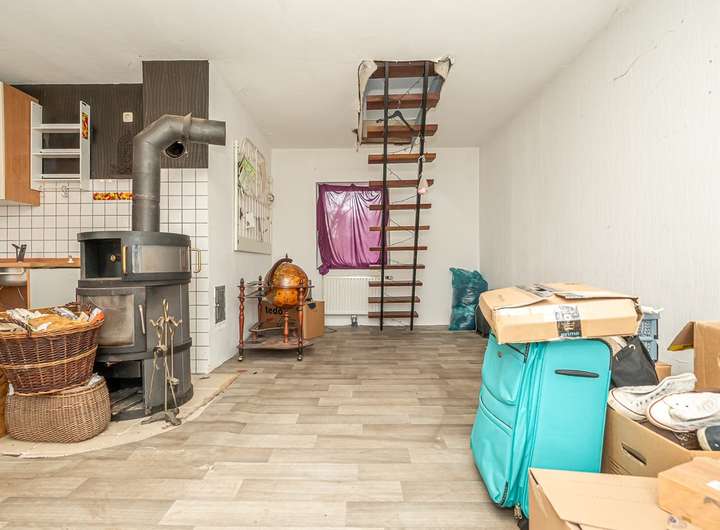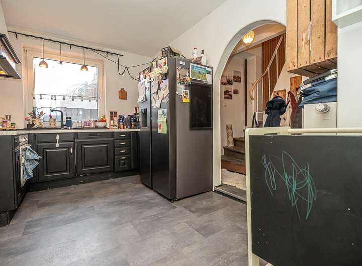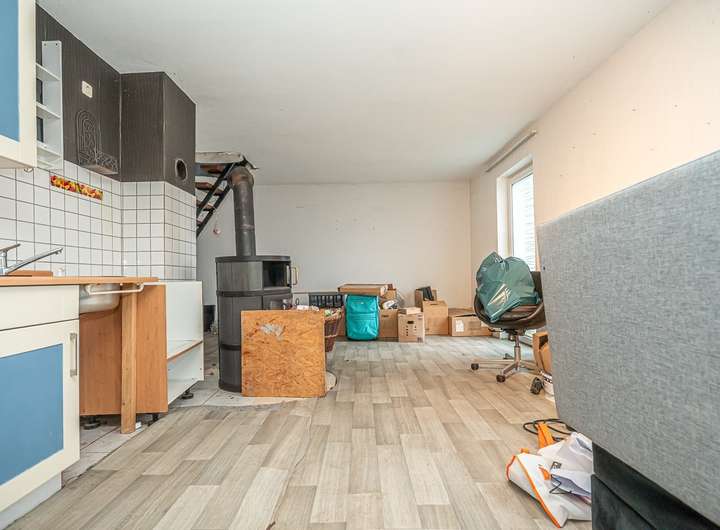 Das Nebengebäude hat im Erdgeschoss ein Bad, eine offene Küche mit dem Wohn-und Essbereich sowie einen ausgebauten Dachboden (1 Raum).