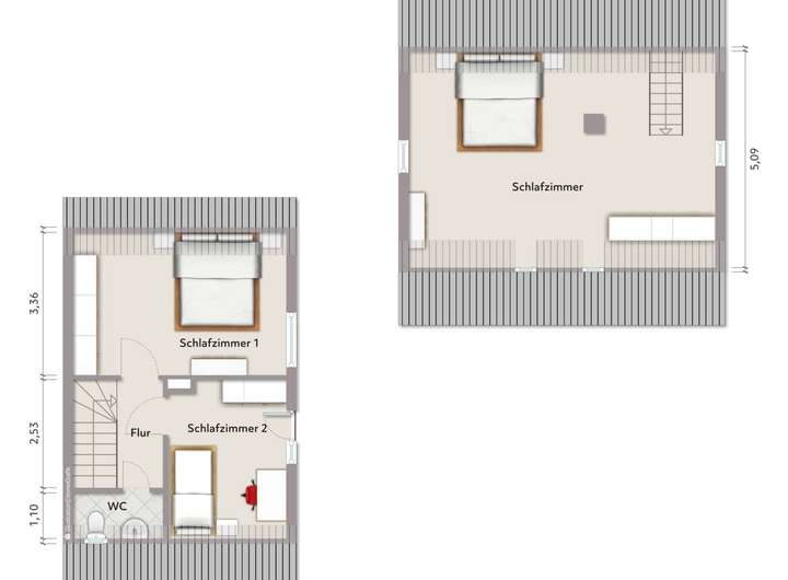 DG: 2 Schlafzimmer, WC, Flur