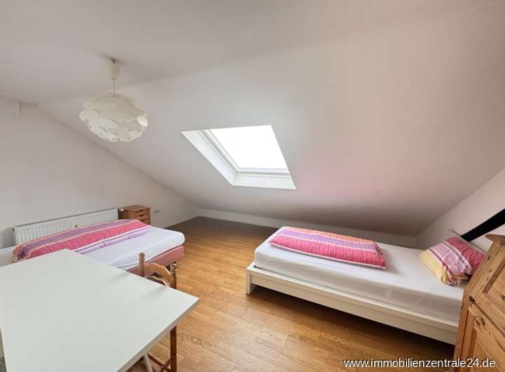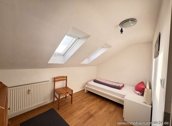 Die Wohnung Maisonette im Obergeschoss und Dachgeschoss ist mit ca. 148 m² Wohnfläche besonders großzügig konzipiert und bietet dank des offenen Zuschnitts und vieler Fenster eine lichtdurchflutete Wohnatmosphäre. Der zentrale Wohn-Essbereich mit Kamin und die angrenzende moderne Küche mit Zugang zur Dachterrasse dient als Herzstück dieser Einheit – ideal für gesellige Abende oder entspannte Stunden im Freien. Mehrere Schlaf- oder Arbeitszimmer sowie ein Badezimmer und das separate Gäste WC bieten ausreichend Raum für größere Familien oder Wohngemeinschaften. Die Dachterrasse lädt zum Verweilen ein und bietet einen schönen Blick ins Wohnumfeld oder den Garten.