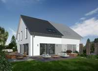 Das ist unser Doppelhaus 05. Hier sind in den jeweils knapp 80 m² großen Erdgeschossen die Übergänge fließend - und sorgen auf diese Weise für ein außergewöhnliches Wohnerlebnis. Das zentral gelegene Treppenhaus trennt Eingangsbereiche beziehungsweise Nutzräume mit HWR und Gäste-WC von dem hellen Wohn-Koch-Ess-Bereich, der mit seiner Größe von mehr als 45 m² den Mittelpunkt des Hauses bildet. Im Obergeschoss: ein Elternschlafzimmer mit integrierter Ankleide, zwei Kinderzimmer sowie ein Badezimmer mit Wanne, Dusche und WC.