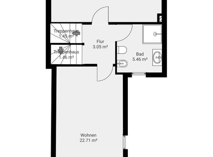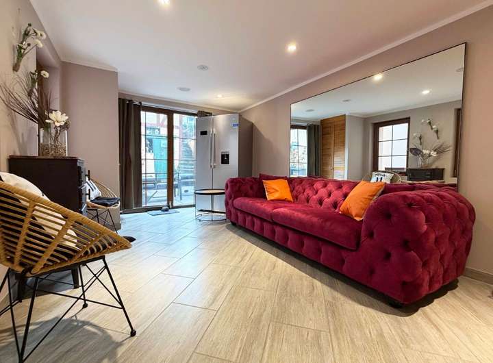 Das Erdgeschoss überzeugt mit einem großzügigen, lichtdurchfluteten Raum (ca. 37 m²) und direktem Zugang zur Terrasse sowie zum ca. 75 m² großen Garten – eine echte grüne Oase in zentraler Lage. Ein Gäste-WC ergänzt diese Ebene.