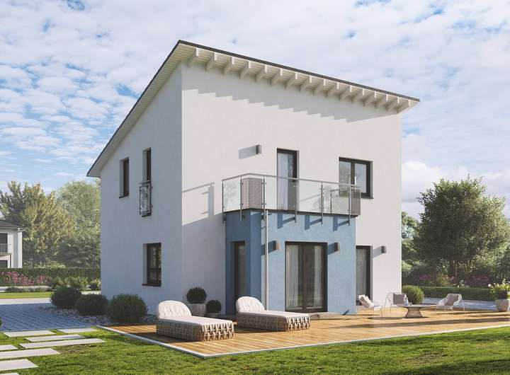 Das Home 1 ist ein zeitgemäßes Einfamilienhaus, das mit 124 m² Wohnfläche und vier Zimmern auf zwei Etagen die ideale Lösung für kleine Familien 👨👩👧👦 bietet.